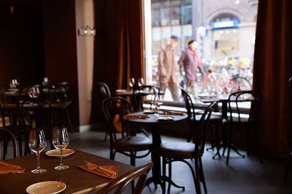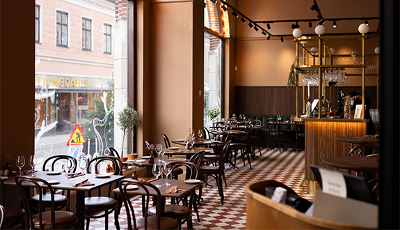 Bistro Kinos lokaler hittar du i direkt anslutning till entrén ut mot Stortorget / Lilla Fiskargatan. Till vänster efter entrén ligger STORA MATSALEN där det finns sittplats till ca 50 personer, men det får vistas 150 personer totalt på denna yta. Här finns också Bistro Kinos bar / kassa. Matgäster placeras vid borden av personalen.
