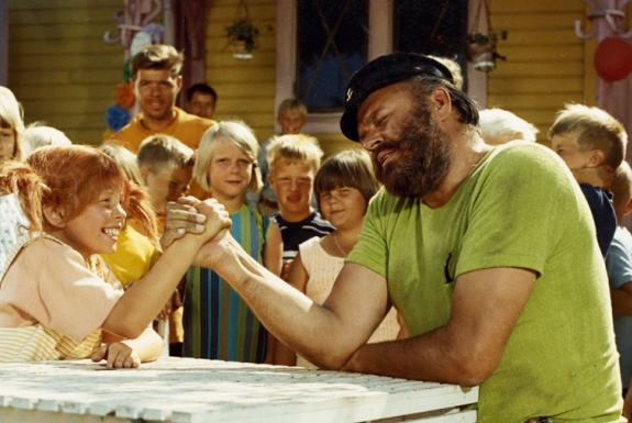 Pippi ställer till kaos på kafferep och flyger i ballong. Hon återser också sin pappa Efraim Långstrump, kung av kurrekurredutterna.